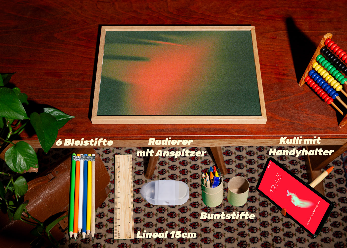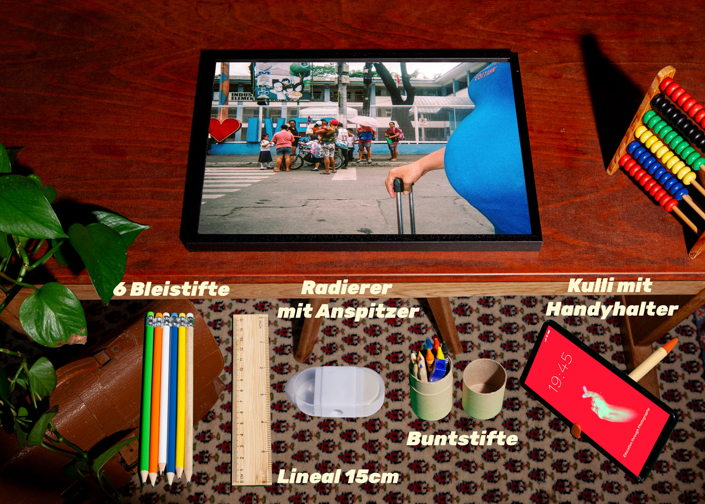 Ein Poster, das Geschichten erzählt - Stifte, Lineal, Radierer – und ganz viel Hoffnung im Gepäck.