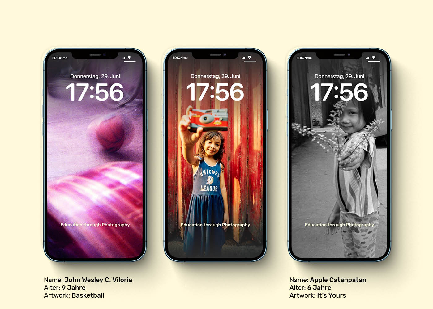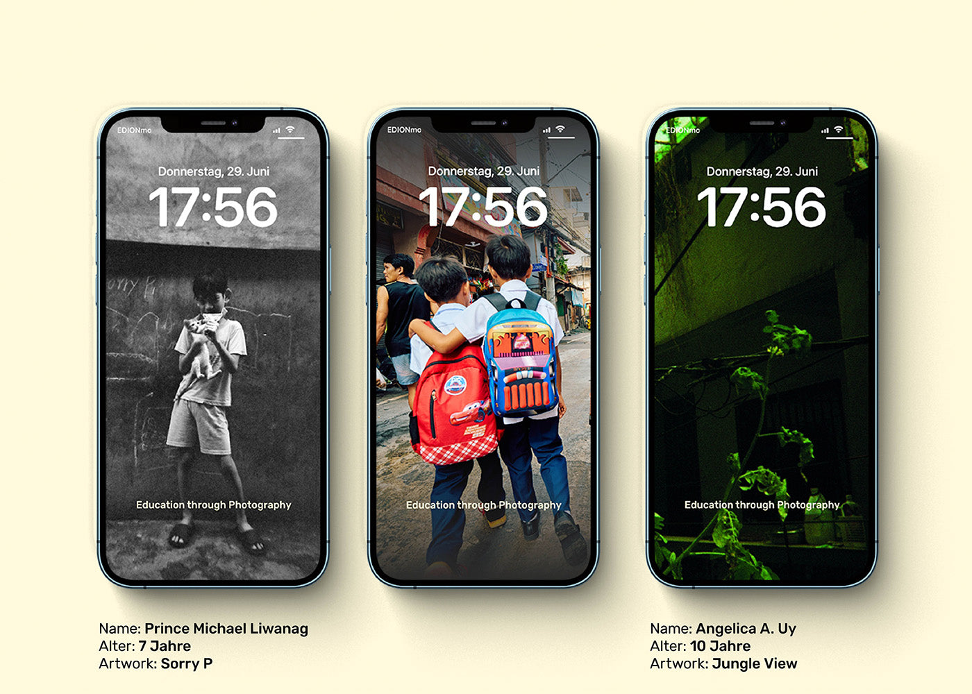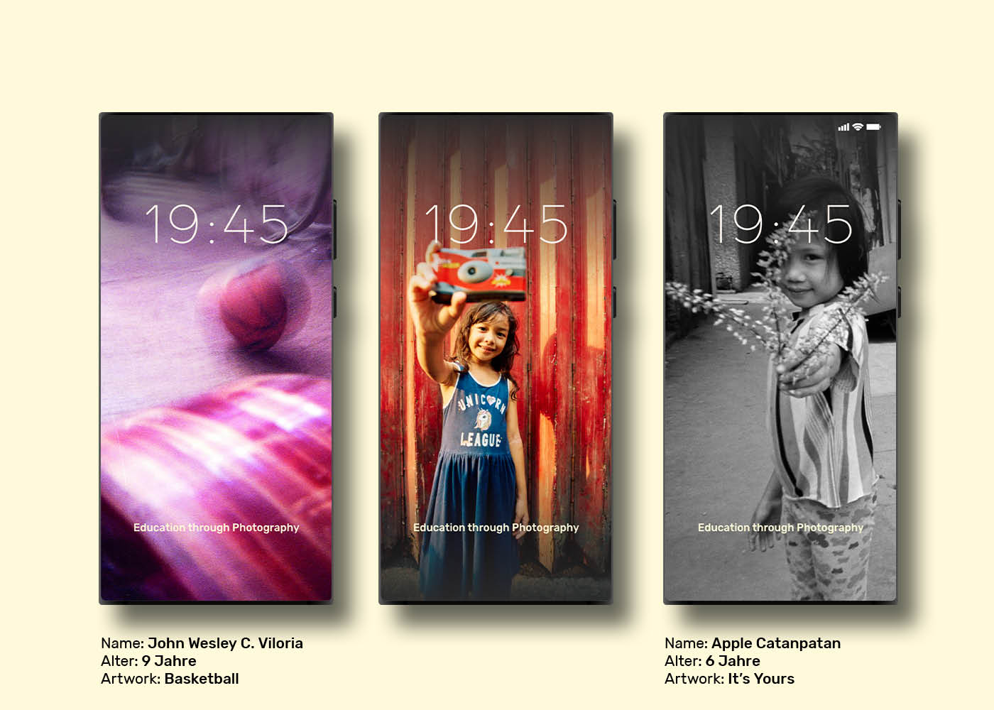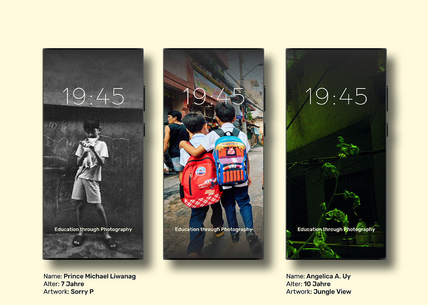 Jedes Poster ist auf der Rückseite mit Infos zum jeweiligen Kind und seinem/ihrem Artwork versehen.
