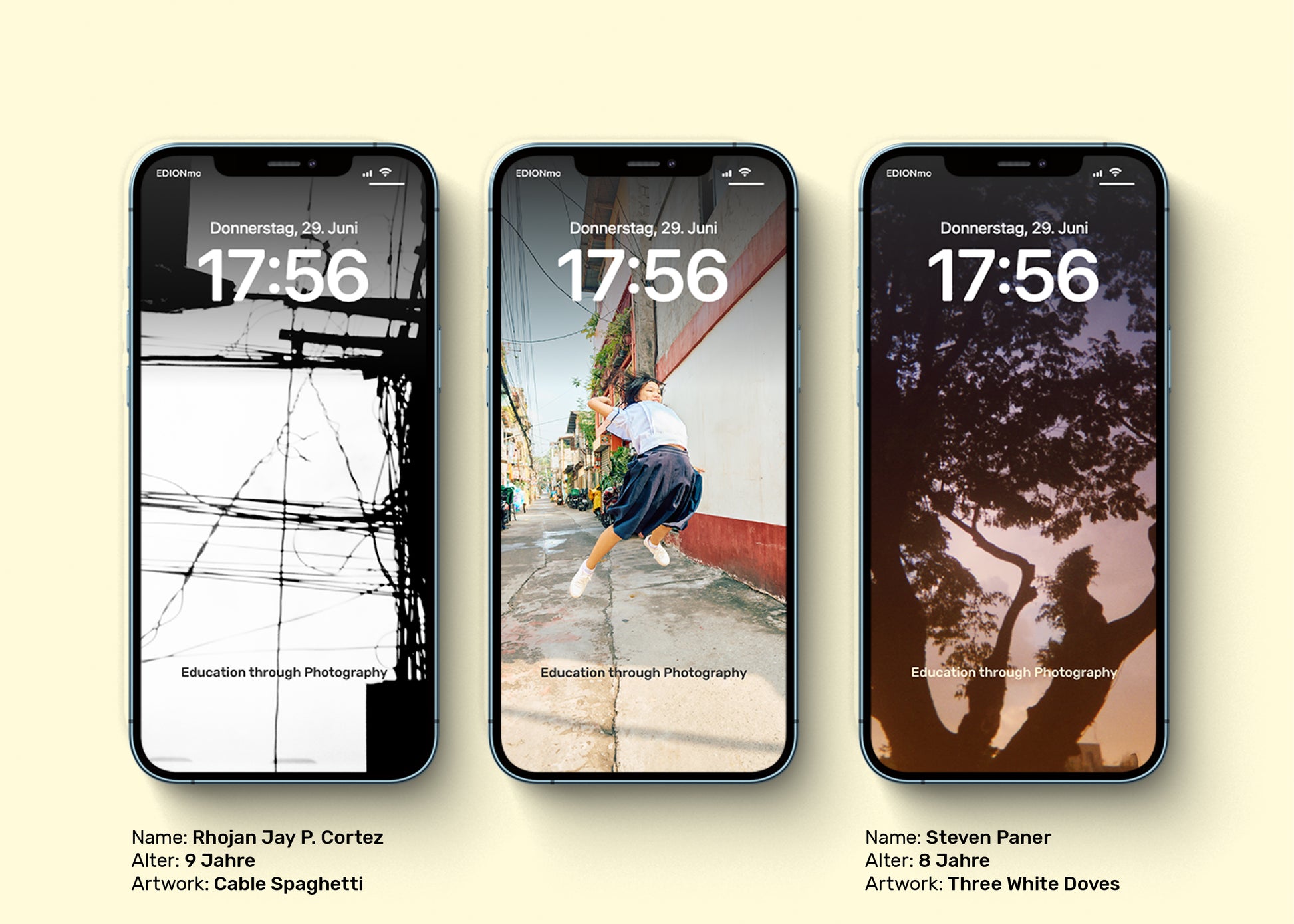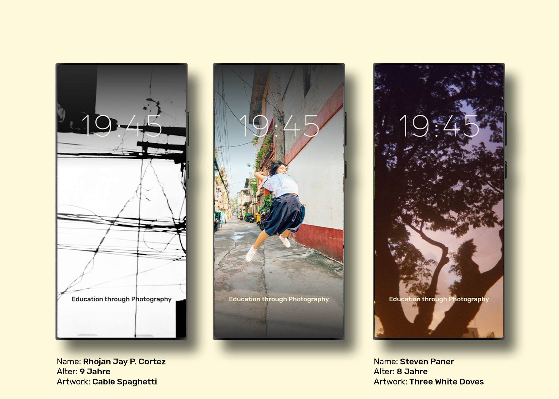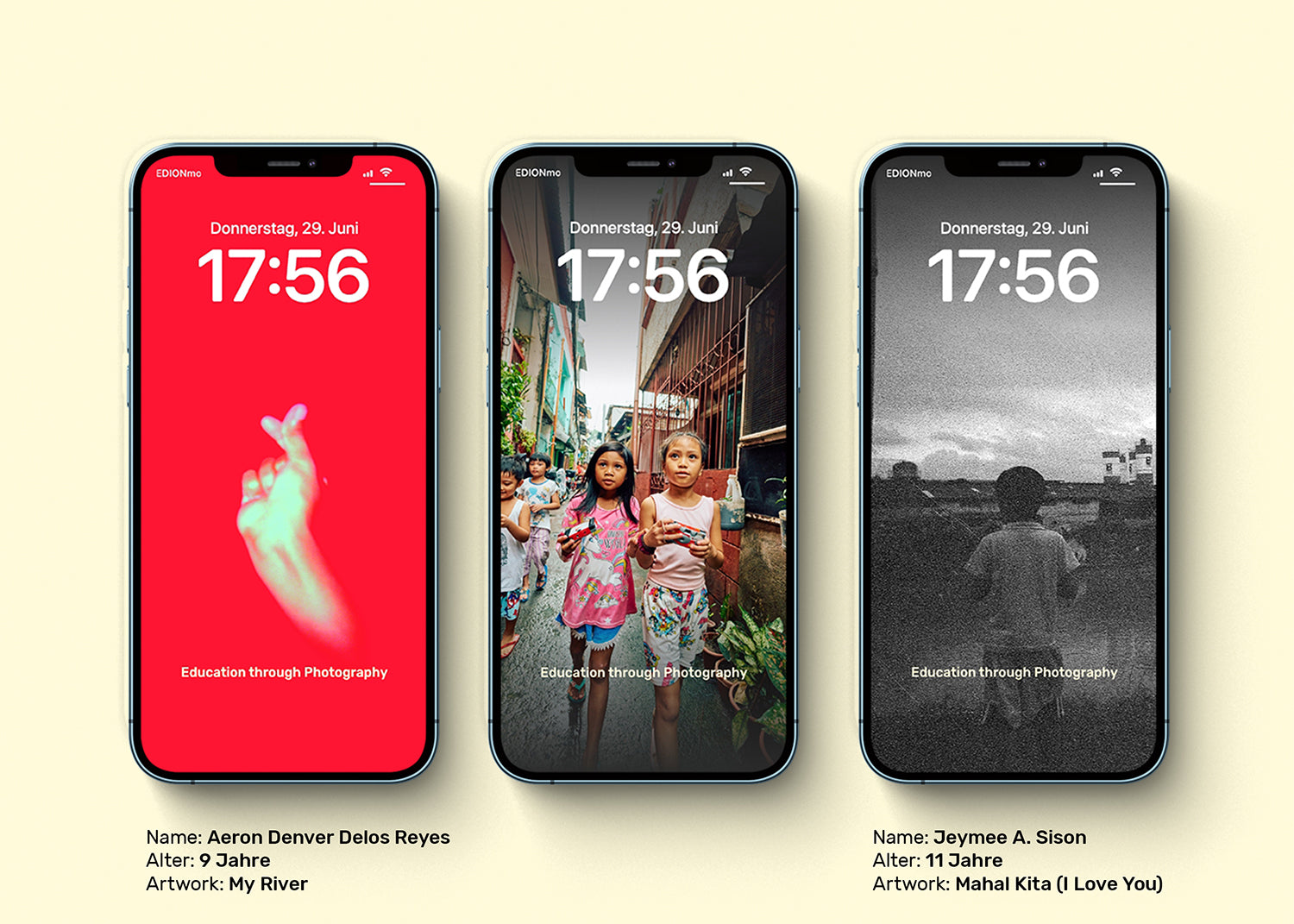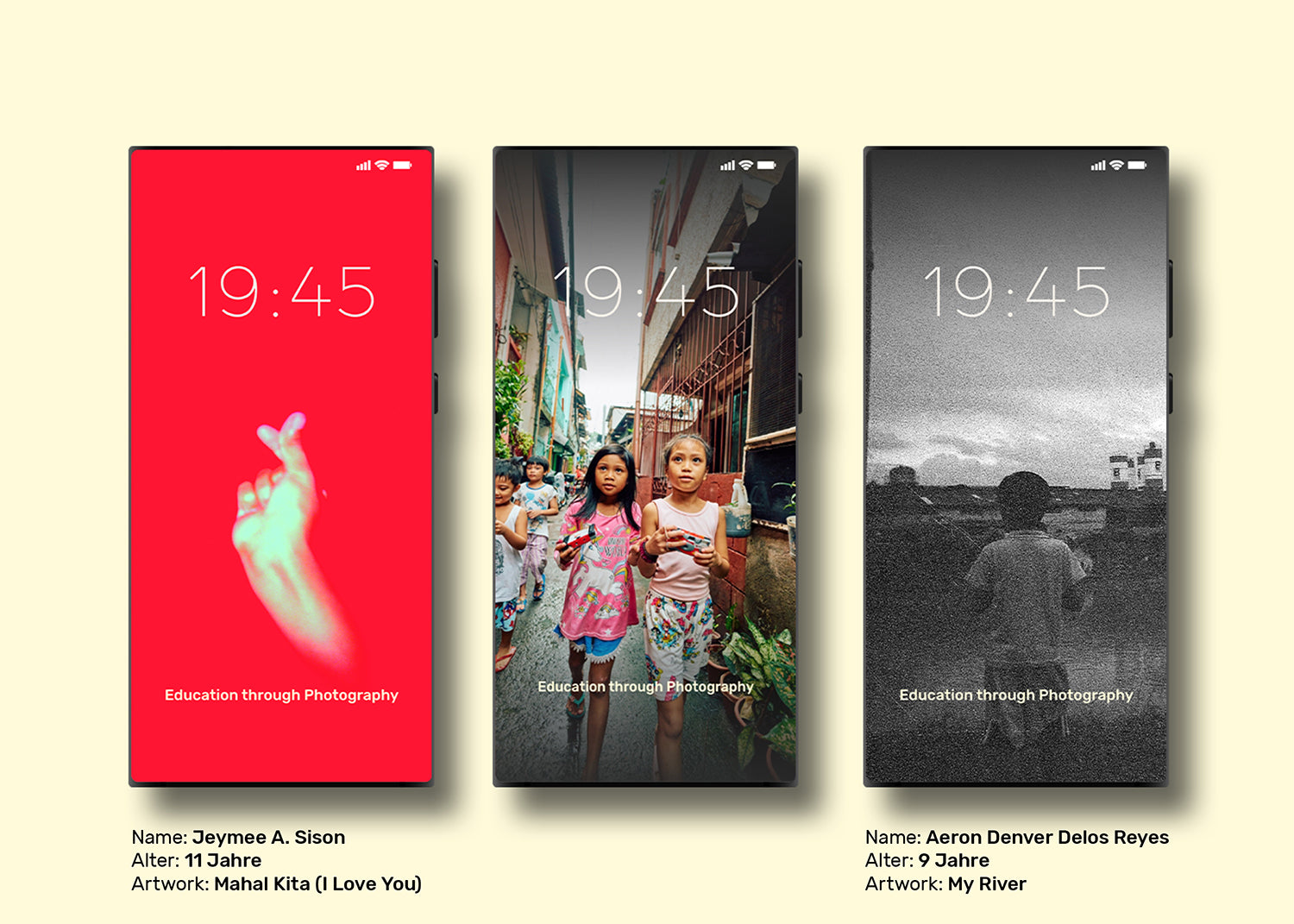 Jedes Poster ist auf der Rückseite mit Infos zum jeweiligen Kind und seinem/ihrem Artwork versehen.
